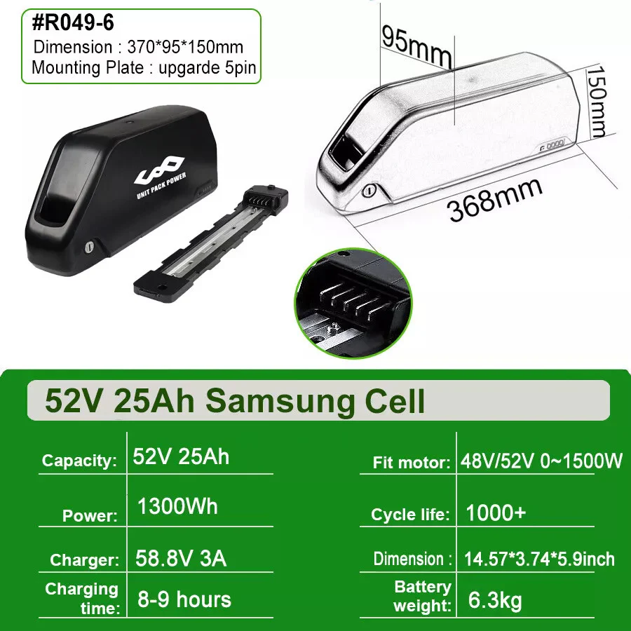 52V 25Ah 2000W Motor Li-ion Ebike Battery Electric Bike Battery Samsung Cells Jumbo Shark